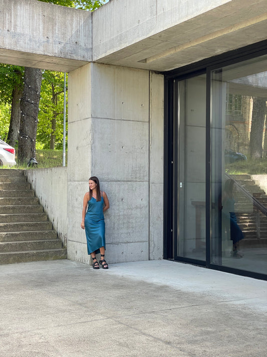 Petrolejas krāsas kleita uz lencītēm