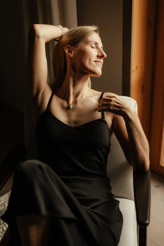 Melna satīna kleita uz lencītēm - maksi garums