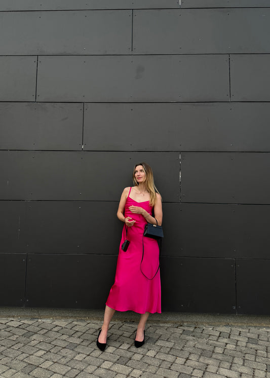 Fuksijas krāsas kleita uz lencītēm